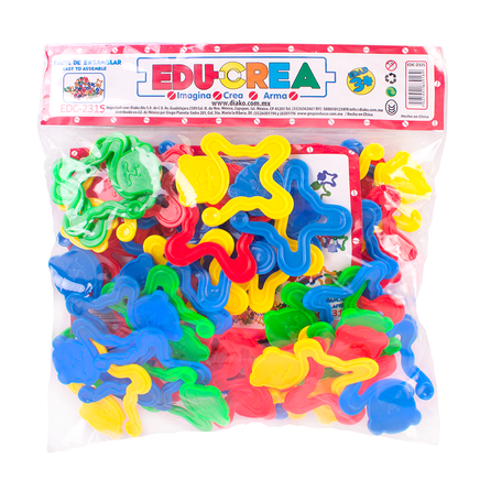 Juego de ensamble con piezas de plástico flexible que se unen para formar diferentes figuras. Desarrolla las habilidades estratégicas, la coordinación ojo-mano, la psicomotricidad fina, la asociación de colores y la creatividad.
