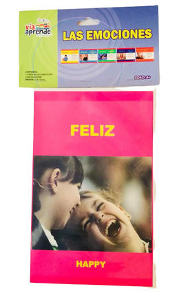 Incluye: 15 tarjetas de doble vista útiles para terapias emocionales, con imágenes y vocabulario en español e inglés por un lado, y al reverso una actividad de pensamiento critico.