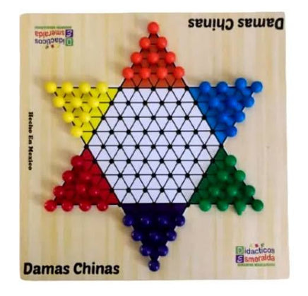 Juego de damas chinas de madera, desarrolla habilidades estratégicas, divertido juego para la convivencia familiar, incluye 1 tablero de madera y 60 canicas de plástico en 6 colores diferentes.