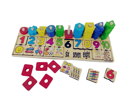 Tablero contador de asociación , con figuras geométricas y números con su asociación.